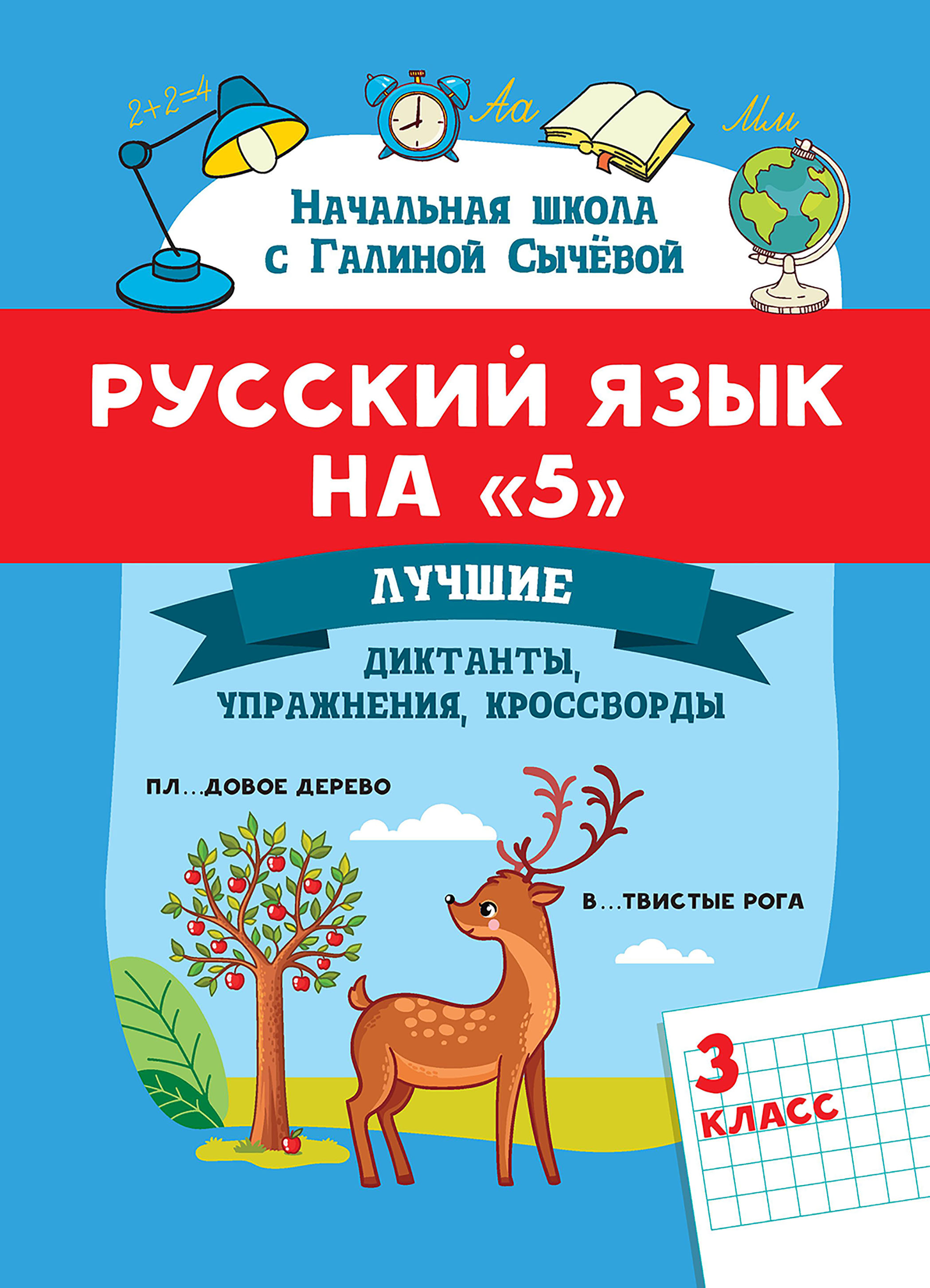 В сборнике "Русский язык на "5": лучшие диктанты, упражнения, кроссворды: 3 класс" представлен материал, позволяющий повторить, проработать и закрепить знания rfo предмету в рамках программы для третьего класса, а также расширить словарный запас и повысить языковую компетенцию учащихся. Продолжается работа с удвоенными и непроизносимыми согласными, разделительными мягким и твёрдым знаками, синонимами, антонимами. Ребята изучают написание НЕ с глаголами, сложные слова. Задания к диктантам закрепляют навыки морфемного разбора и помогают тренироваться в синтаксическом разборе, знакомят с однородными и второстепенными членами предложения. Отдельные вопросы синтаксиса простого предложения прорабатываются в ходе выполнения упражнений. Продолжается освоение морфологии: учащиеся третьего класса приступают к работе над личными местоимениями, повторяют сведения о ранее изученных частях речи. Решение кроссвордов не только закрепит знания по лексике и морфемике, но и напомнит о произведениях, изучаемых на уроках по литературному чтению, и даже освежит в памяти материал по предметам "Окружающий мир", "Математика".